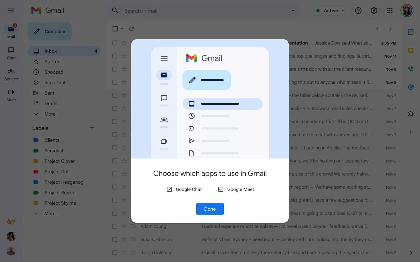 Updated timeline for the new integrated view for Gmail