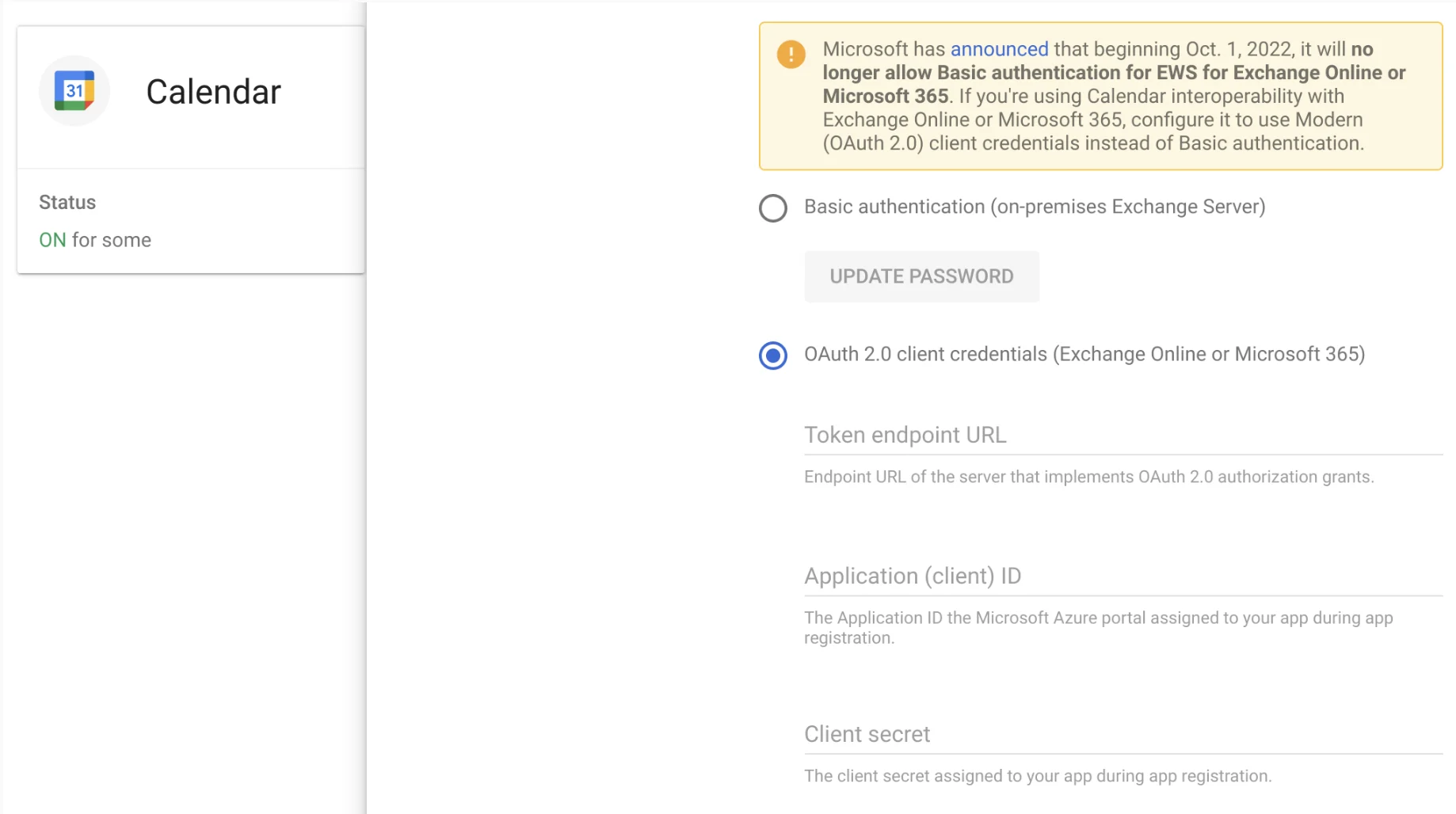 Upgrade to OAuth 2.0 to continue using Calendar Interop by October 1, 2022