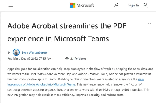 MicrosoftがTeamsからAdobe Acrobatを統合すると発表したというお話ですが、