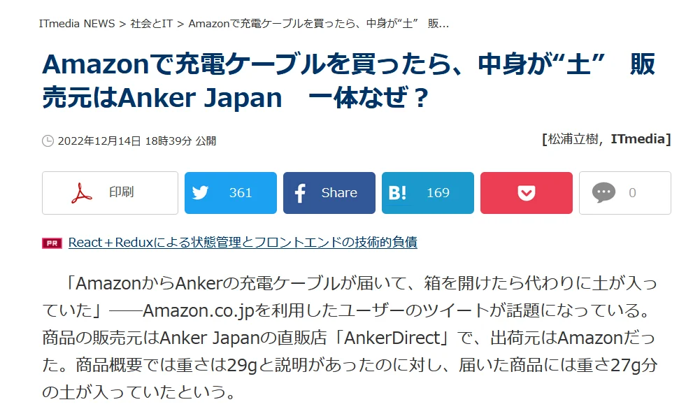 Amazonで充電ケーブルを買ったら、中身が“土” 販売元はAnker Japan 一体なぜ?